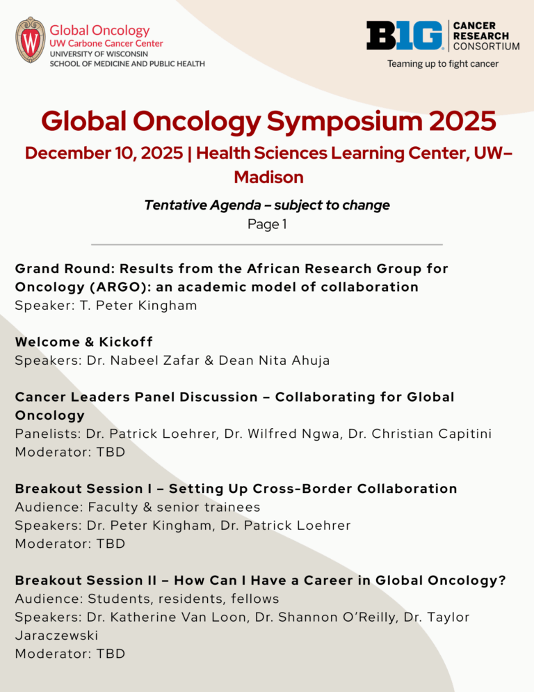 Join us for a day of powerful conversations, global partnerships, and innovative solutions in cancer care. This year’s symposium will bring together leading clinicians, researchers, and trainees working to improve cancer outcomes across borders.